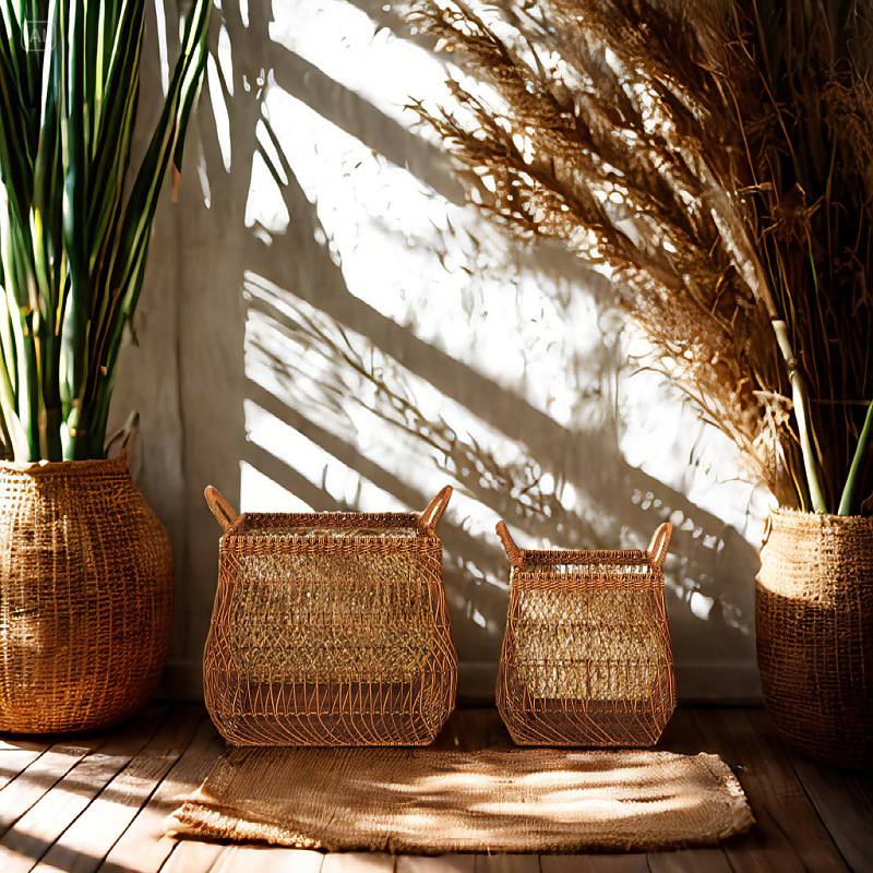 Rattan laundry basket hand-woven hollow debris basket can be washed bathroom storage basket