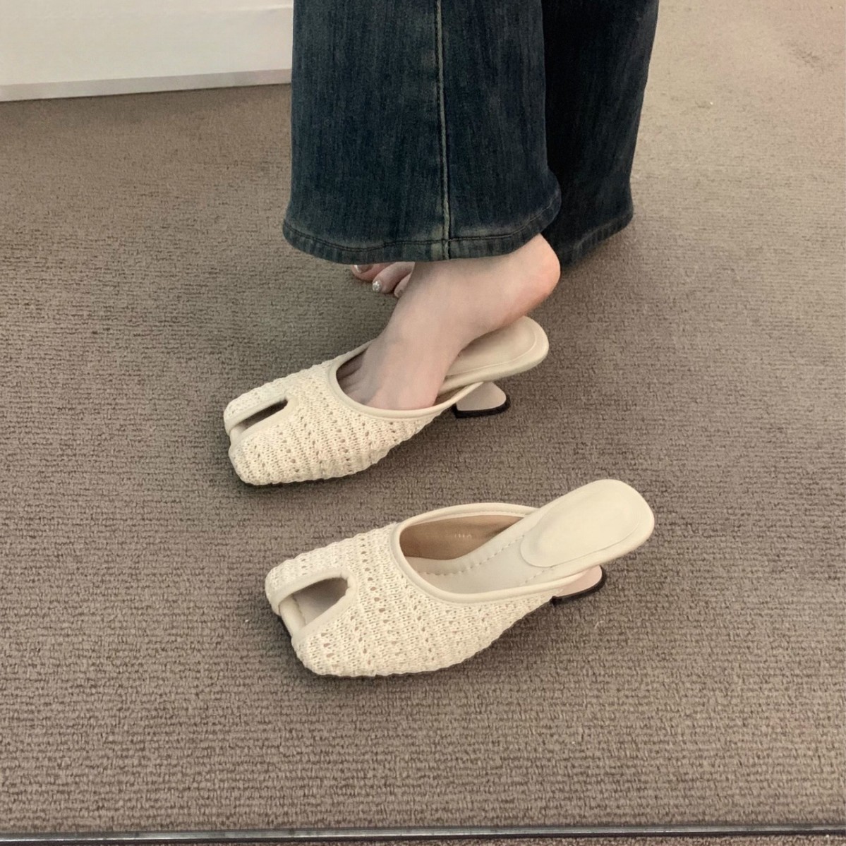 Evening gentle shoes, low heel hollowed-out half slippers for women in summer wear French sandals