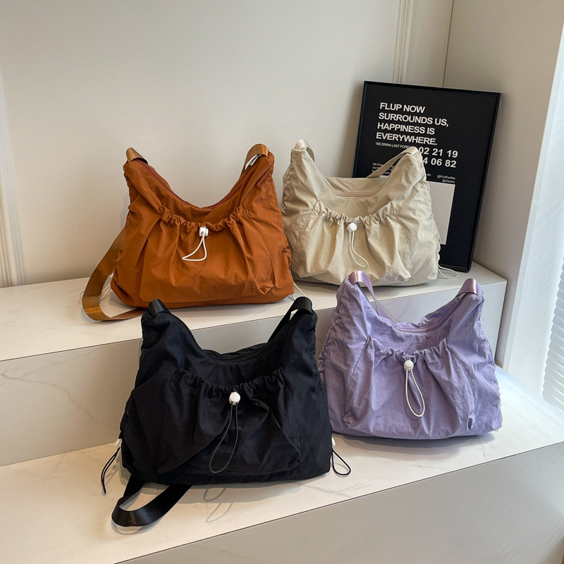 Large capacity cloth bag nylon solid color casual pleated fashionable and versatile one-shoulder class commuter crossbody bag