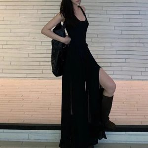 Temperament slim pleated pleated edge irregular knitted long stretch suspender dress for women