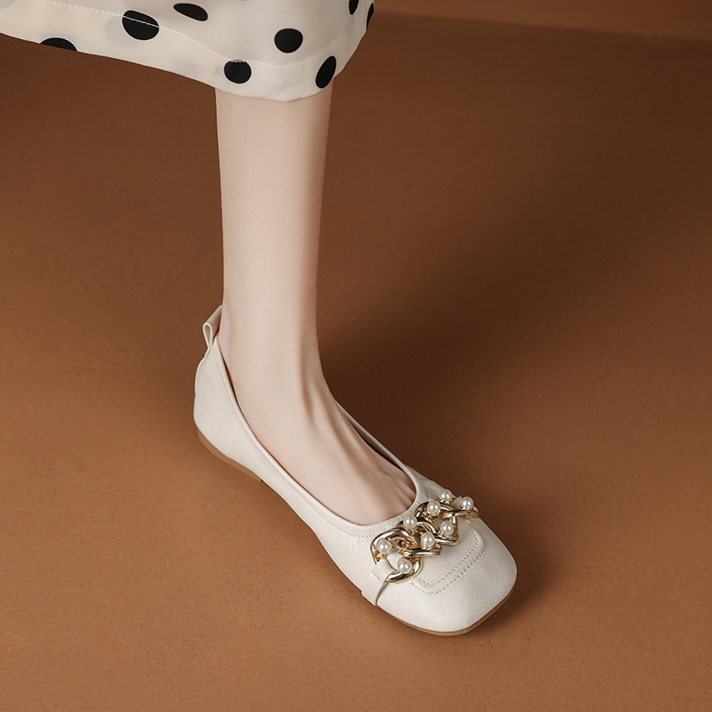 Wanziwei is super soft~~Sweet pearl flat ballet single shoes for women’s new Chinese style soft sole beanie shoes