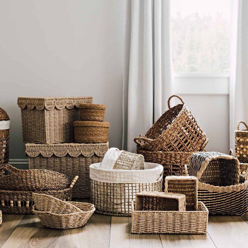 Braided storage basket paper rope material hand-woven basket desktop snack grocery storage basket storage basket