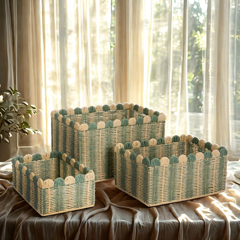 Household large capacity clothes, miscellaneous items, desktop snacks and toys sorting storage basket paper rope woven storage basket