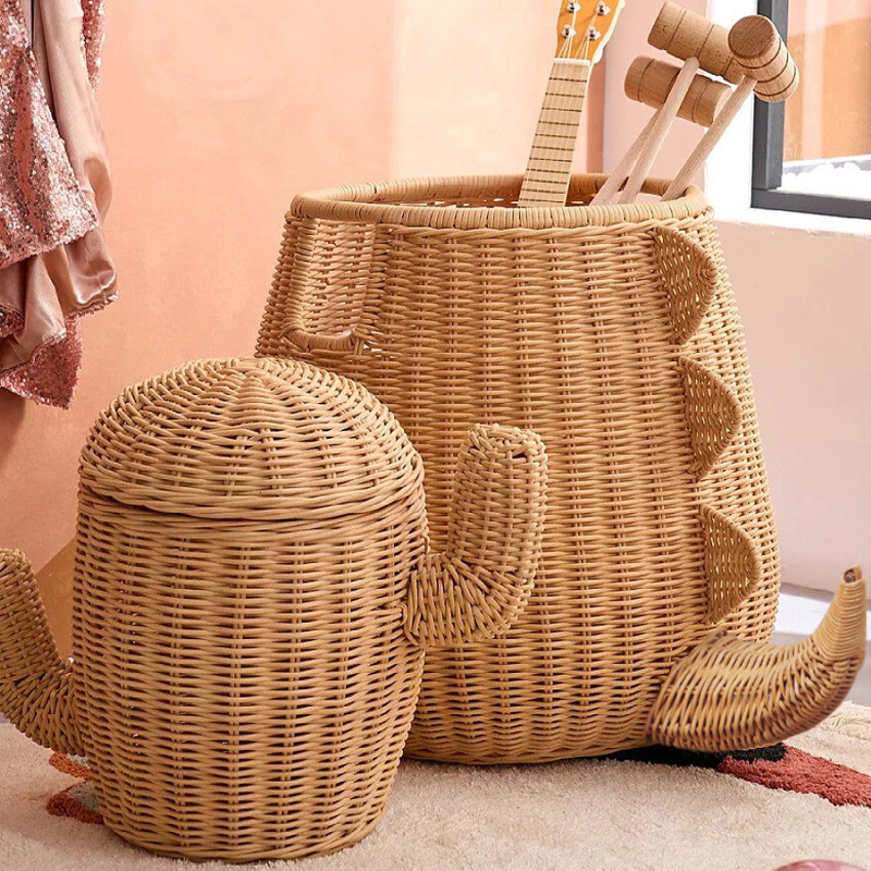 Handmade rattan dinosaur-shaped bathroom clothes basket miscellaneous basket hotel and homestay decoration storage basket toy storage basket