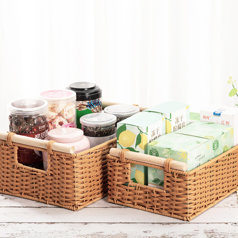 Imitation rattan basket rectangular desktop storage basket household living room debris storage basket plastic rattan snack storage box