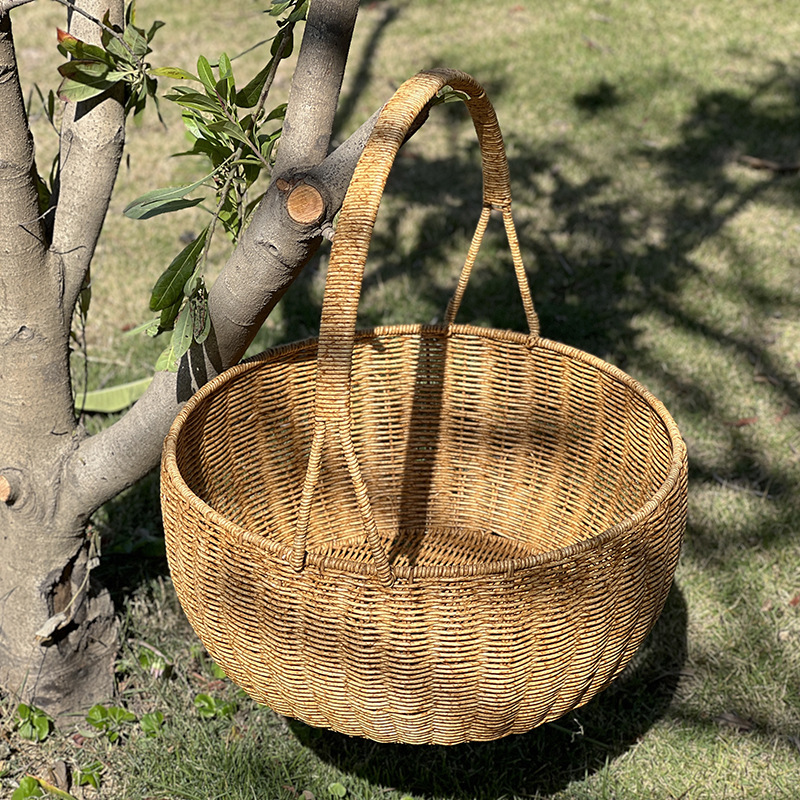 Retro imitation rattan carpentry basket household knitting vegetable basket outdoor picnic basket picking basket fruit gift basket