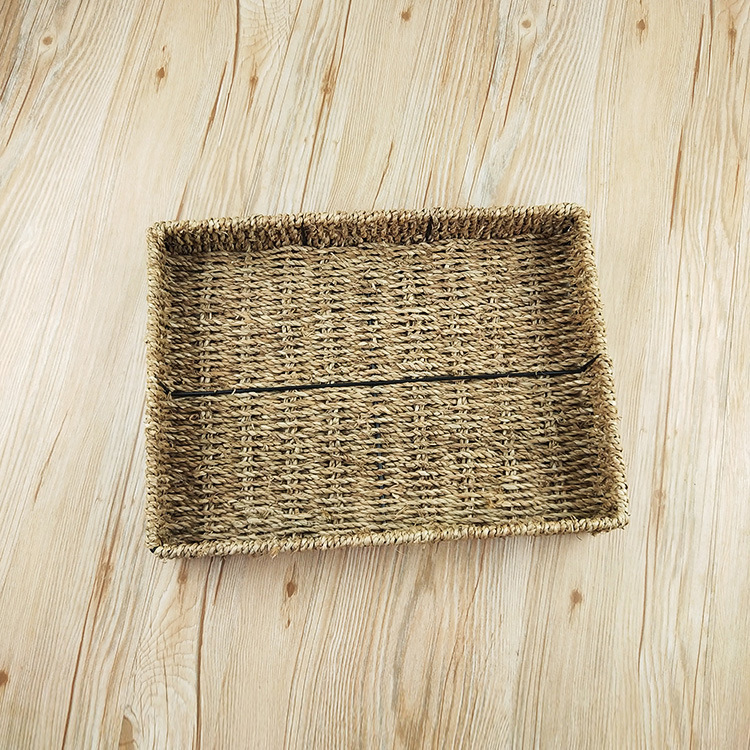 Straw storage basket snack tray jewelry cosmetic storage basket bathroom desktop storage basket seaweed weaving