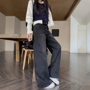 Real shot, design-cut slim jeans for women, early spring high waist loose wide-leg pants, trousers trendy