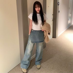 Spring fashionable butt curtain removable two-piece set retro pocket design Korean style versatile jeans for women