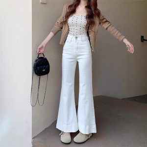 Real shot~White flare jeans for women in summer American loose small person without legs flared trousers