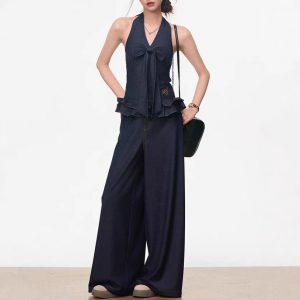 Month issue spliced halter neck vest for women in spring and summer commuting wide-leg pants