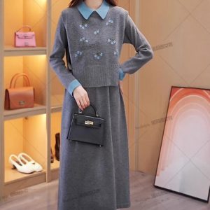 Nobein winter college style knitted dress fashionable two-piece set