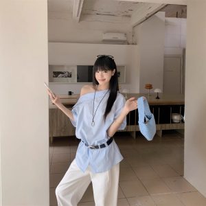 Real photos of Korean loose casual shirts in summer in women’s design and slim tops
