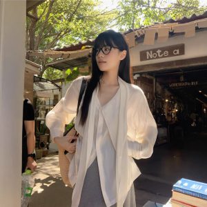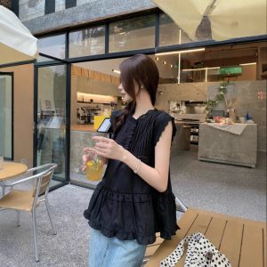Real shot of summer French retro simple white loose temperament niche sleeveless slit shirt women’s top