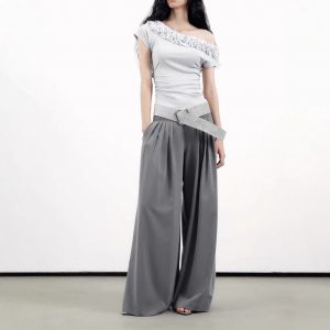 Purple top one shoulder short sleeves for women in summer irregular French large size atmosphere