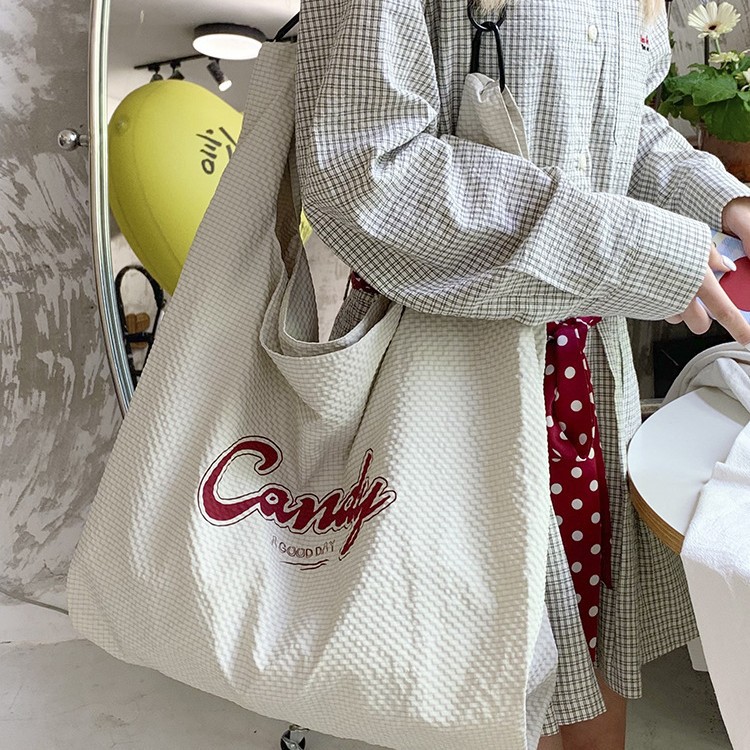 Casual fine-plaid letter printed crossbody bag versatile large capacity handbag nylon canvas bag