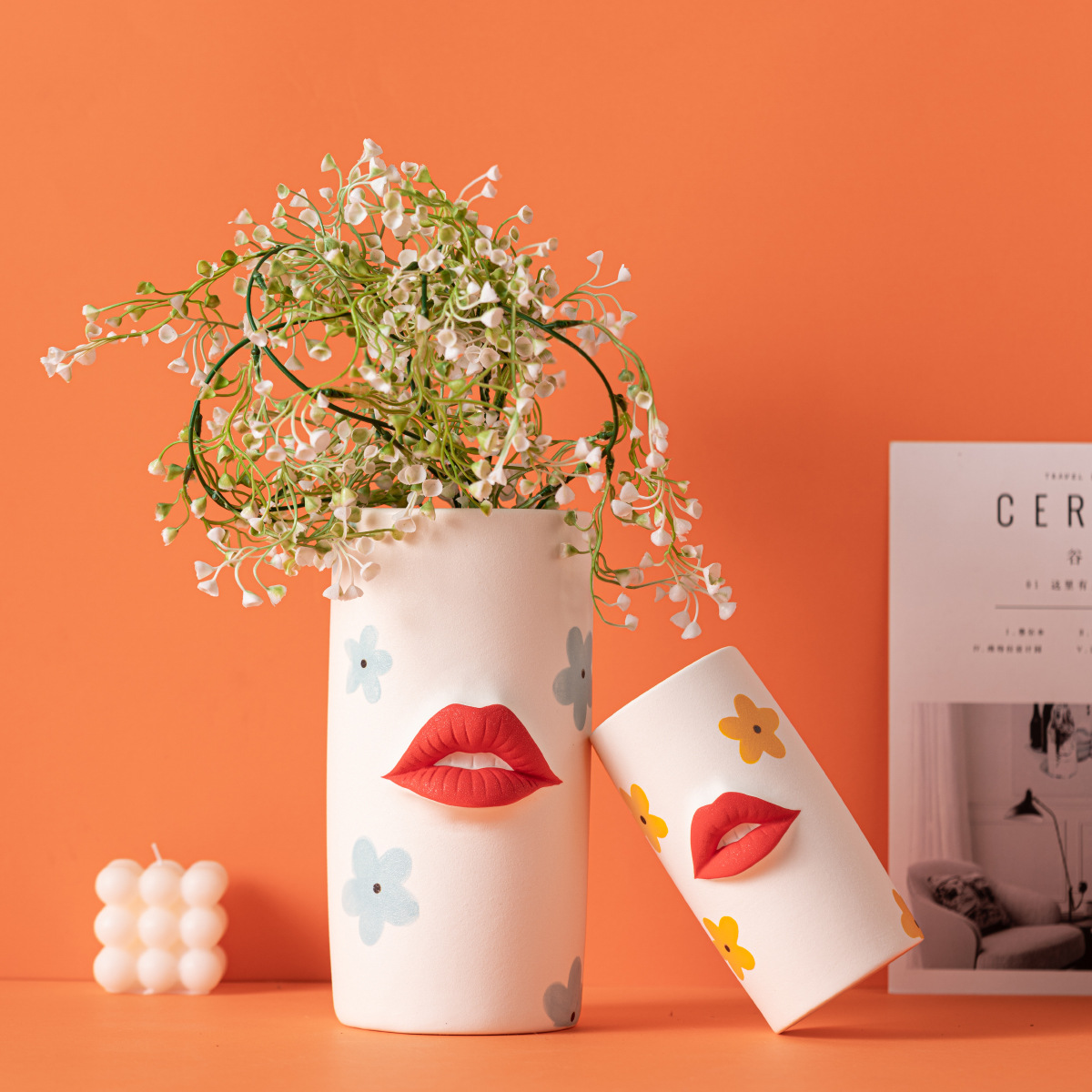 Daimon white decal lip ceramic vase decorations Light luxury craft ornaments