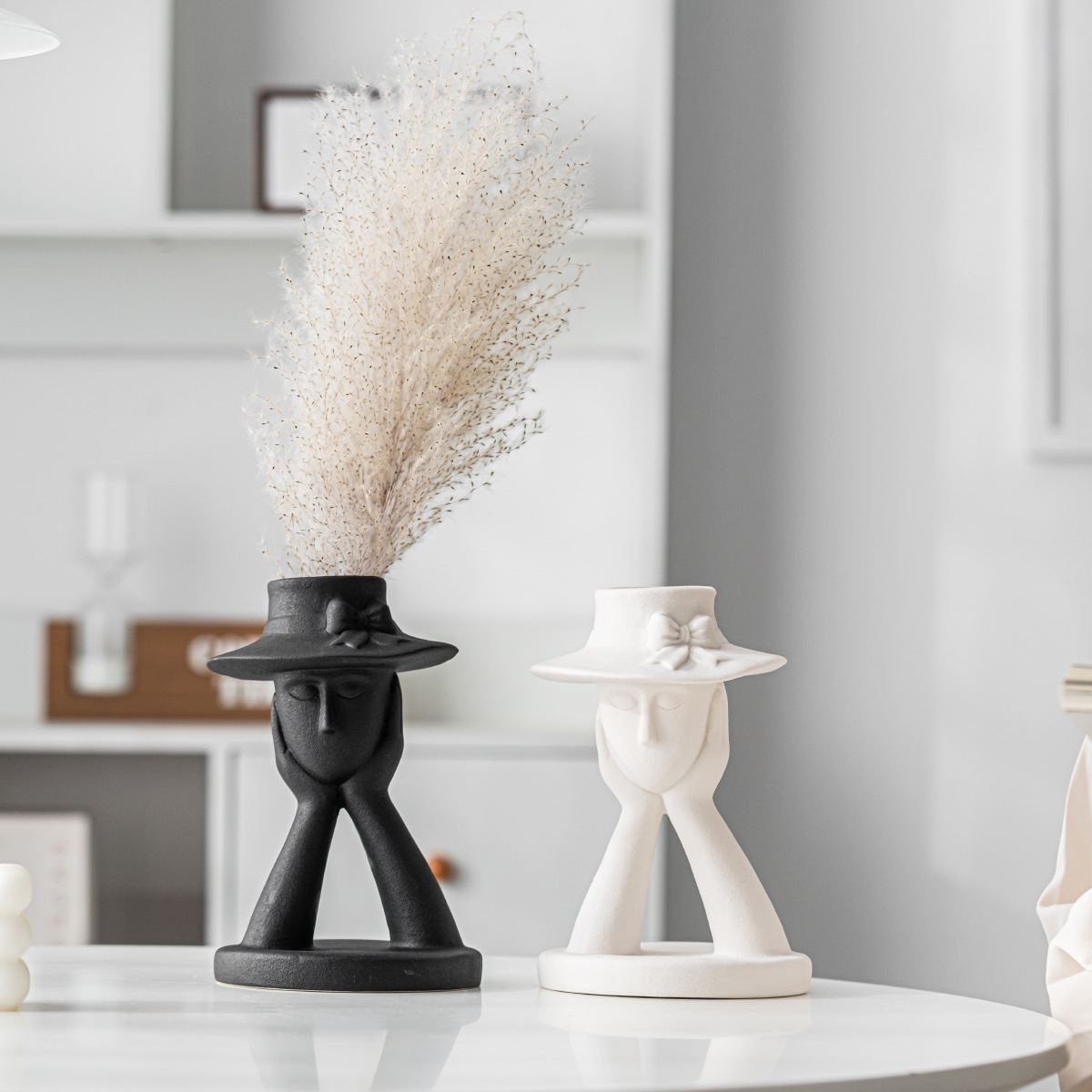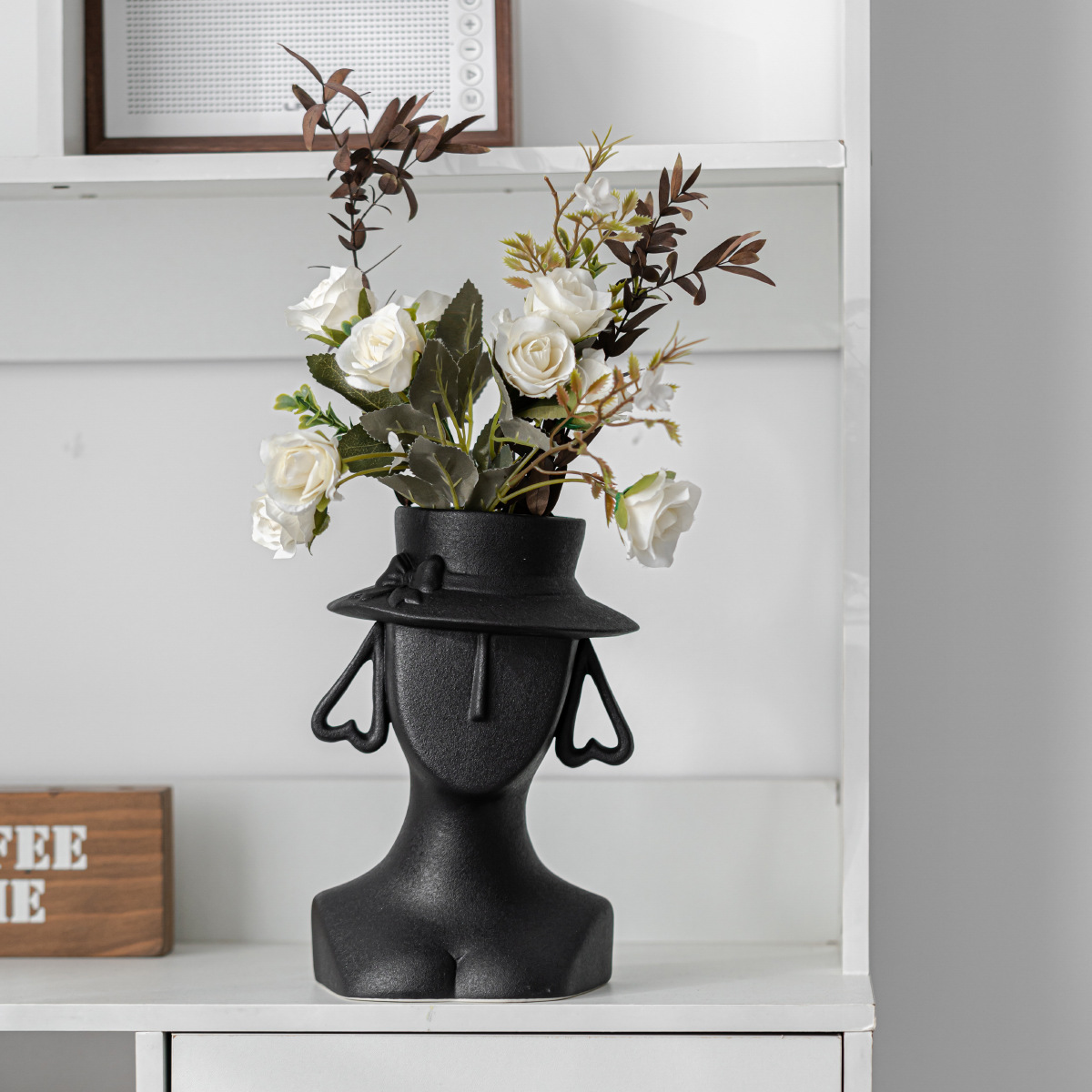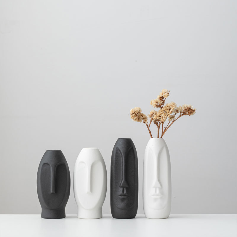 Modern simple abstract characters black and white big flower face ceramic vase soft decoration home decoration