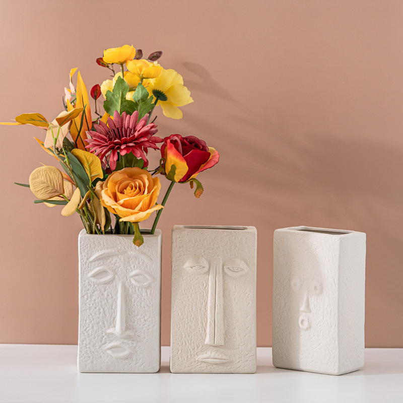 Modern and simple human face sculpture Lubao ceramic vase light luxury decoration home decoration