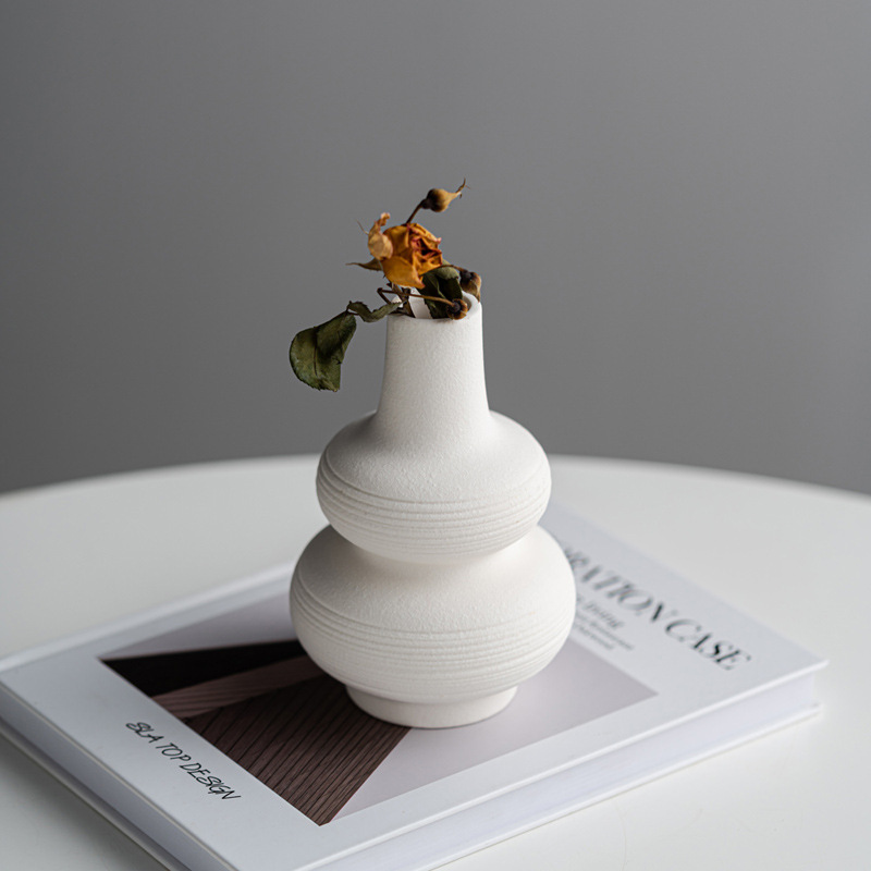 Modern simple lines gourd ceramic high-end vase light luxury texture home decoration