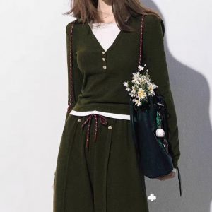 / “Aden’s Tears” fashionable sweater sports suit slimming and versatile base shirt and trousers