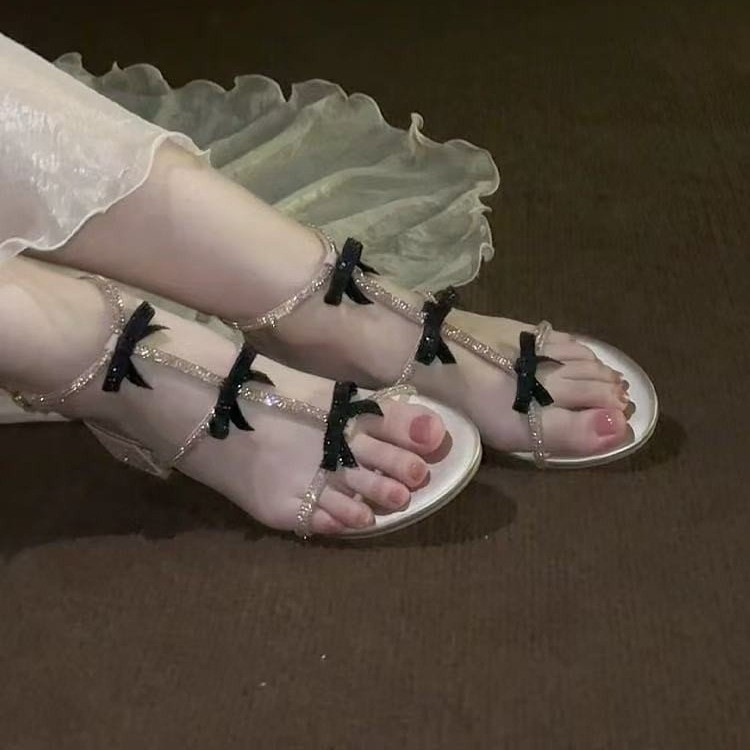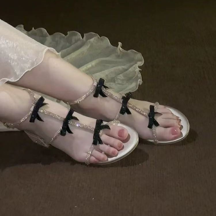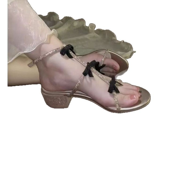 Beautiful rhinestone sandals for women in summer with skirt for women in women’s rhinestones one-strip simple thick heels high heels
