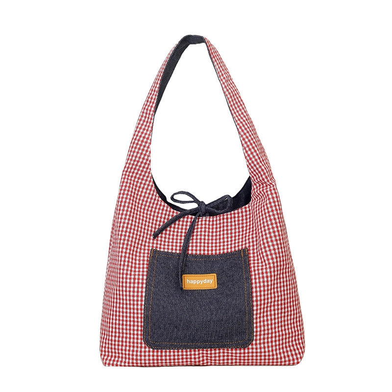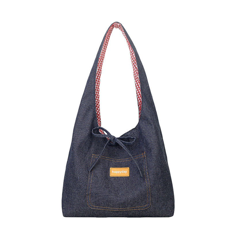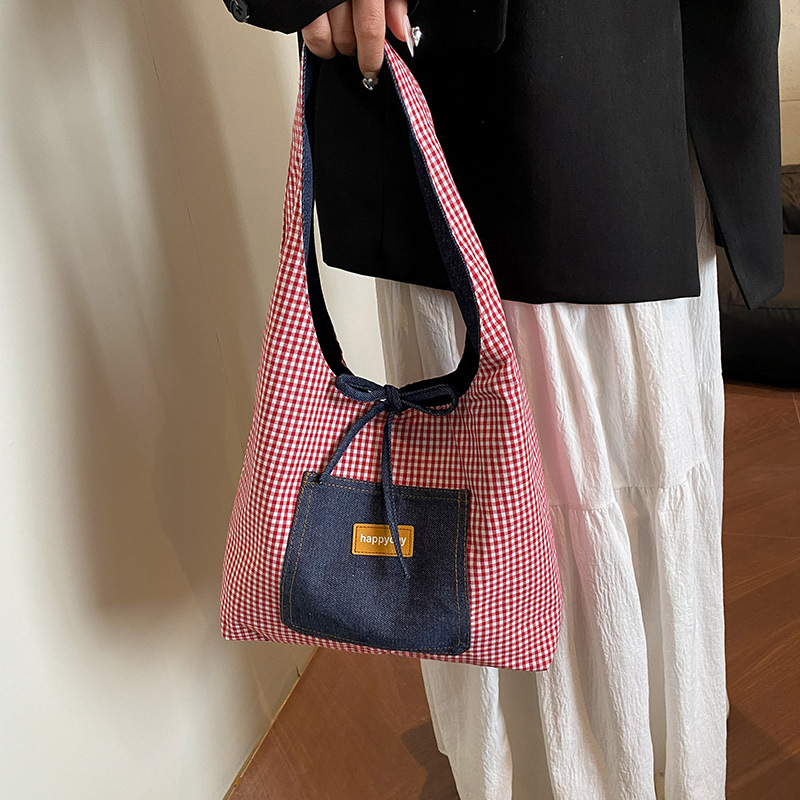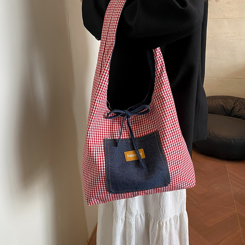 Casual commuting large bag for women double-sided denim single-shoulder underarm tote bag large capacity plaid bag