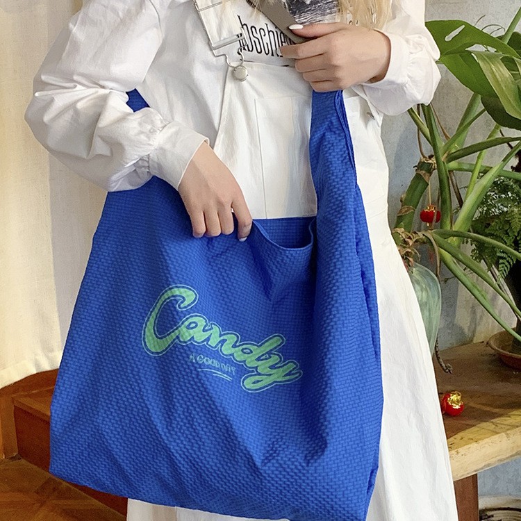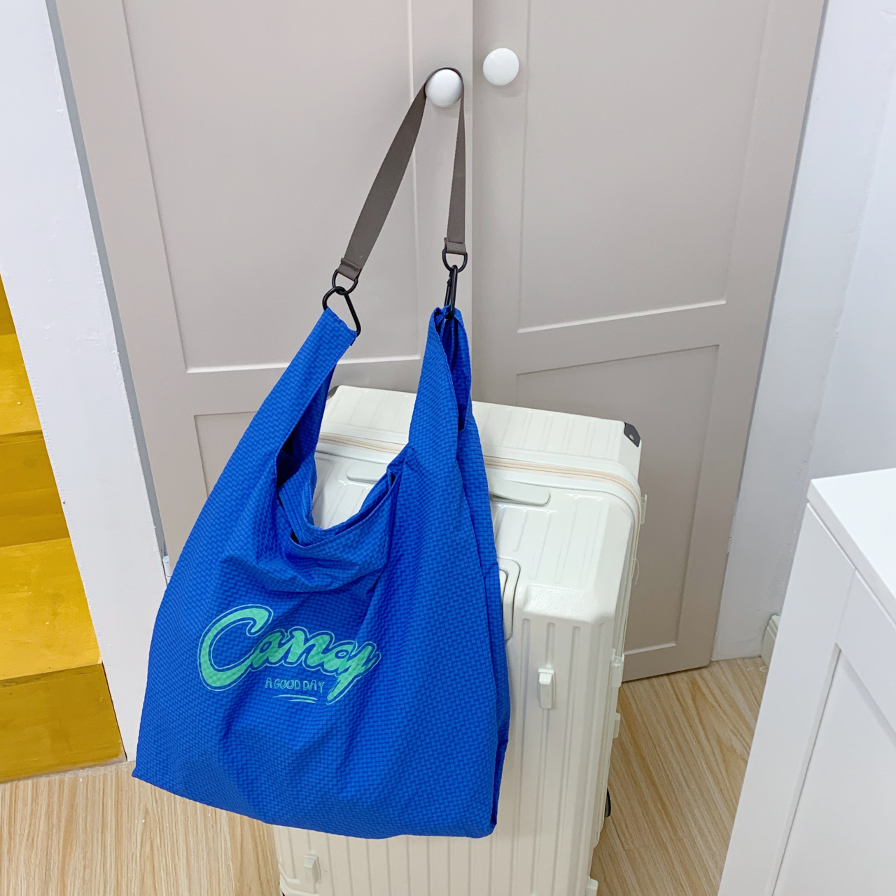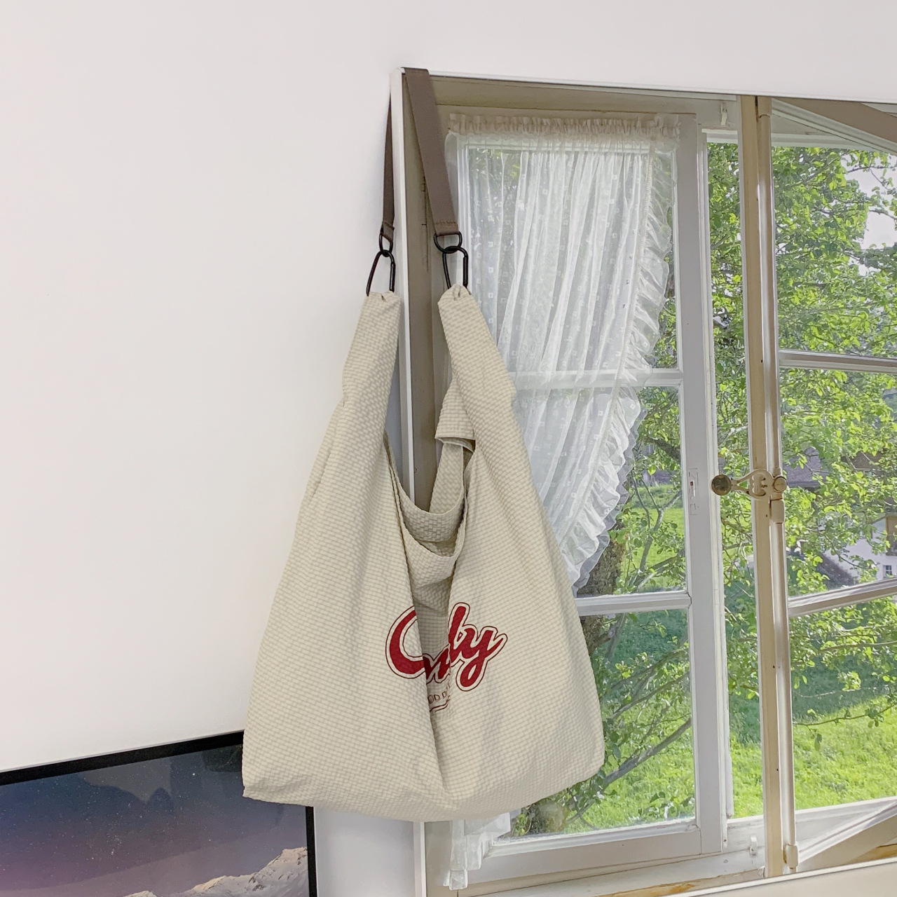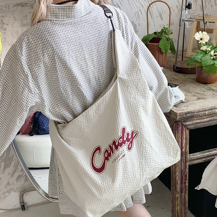 Casual fine-plaid letter printed crossbody bag versatile large capacity handbag nylon canvas bag