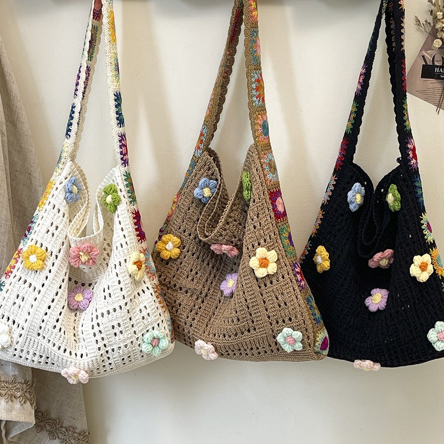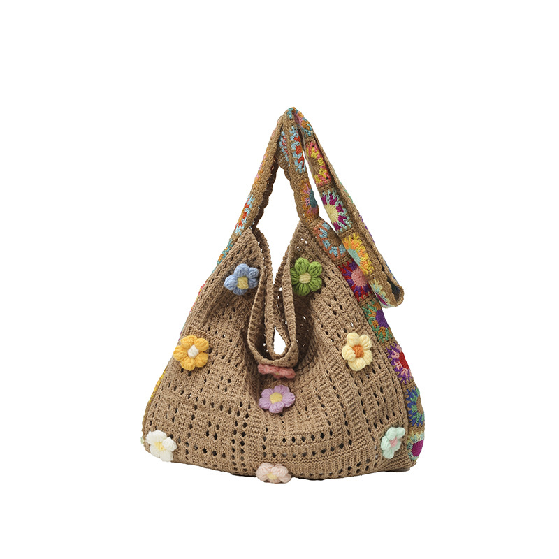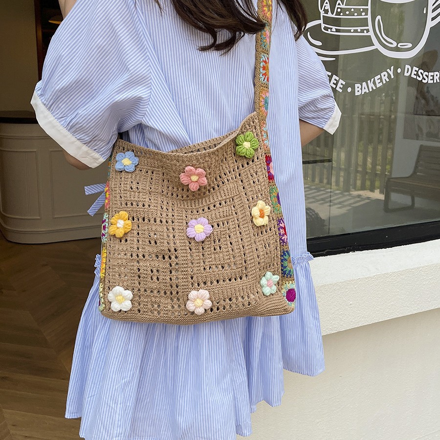 Casual hollow bag knitted beach bag women’s yarn large capacity knitted trunk one shoulder spring and summer
