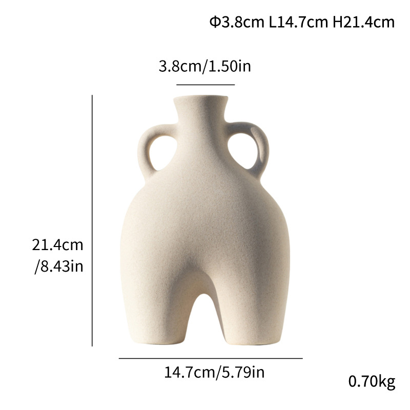 Ceramic European style abstract voxel burnt frosted vase with ears handmade home crafts ornaments style