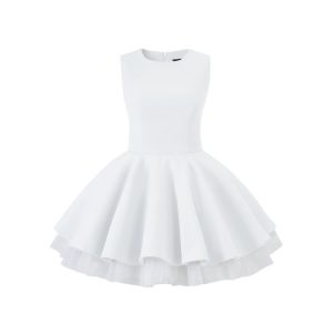 /Contrast color mesh splicing sleeveless French Hepburn dress with temperament waist-hugging fluffy skirt ballet skirt