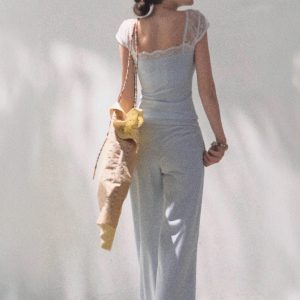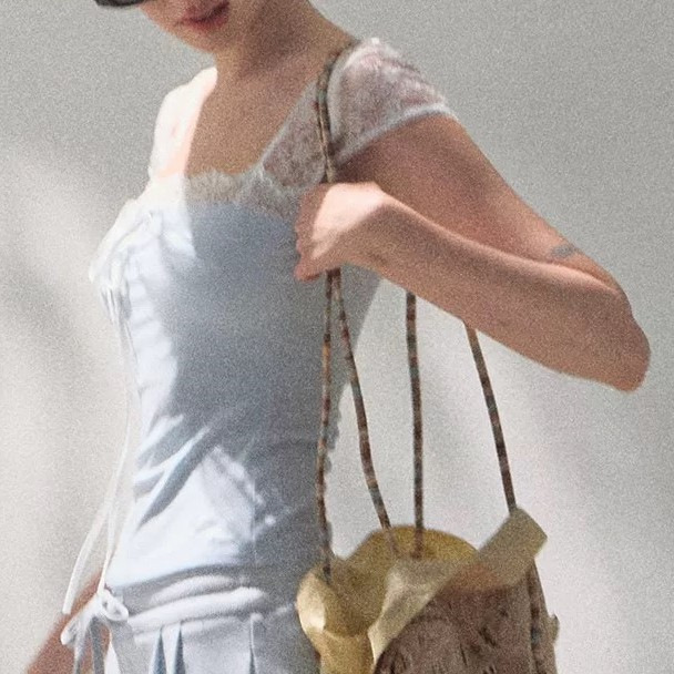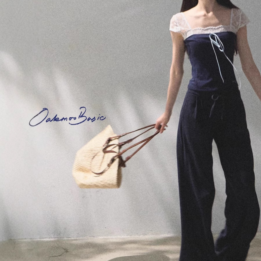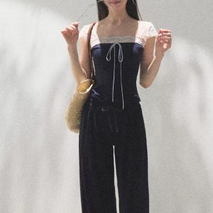* Cotton lace spliced ​​bow design cool and skin-friendly simple short-sleeved shirt top