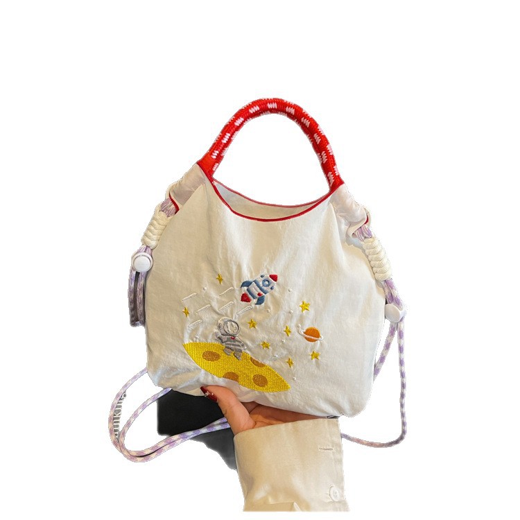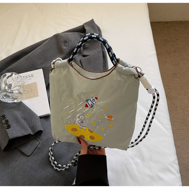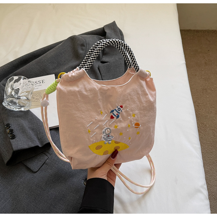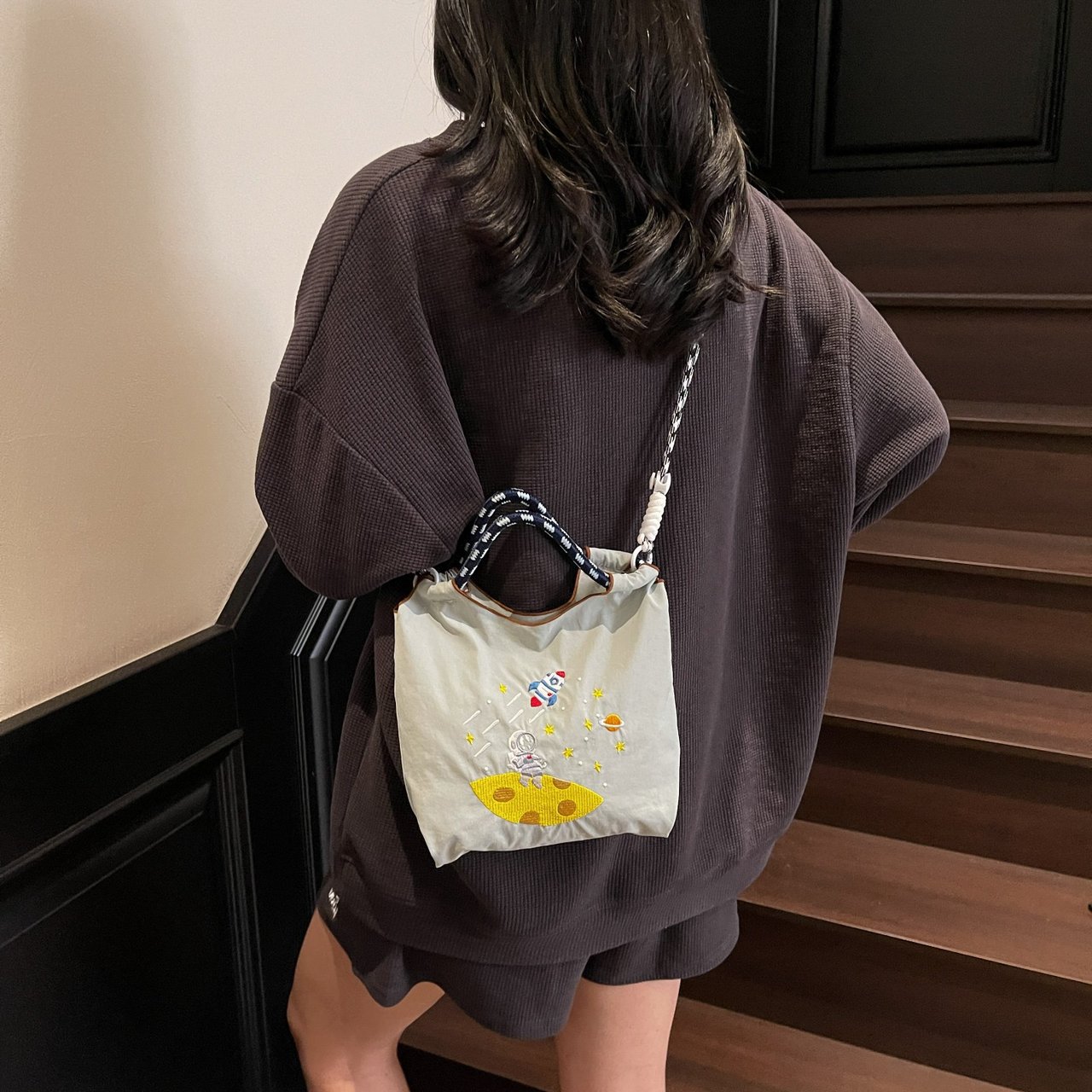 Cute cartoon large capacity shoulder bag embroidered nylon tote shopping bag commuter crossbody bag handbag