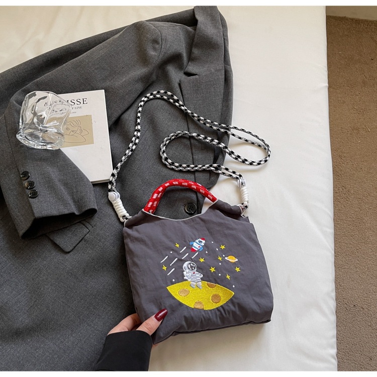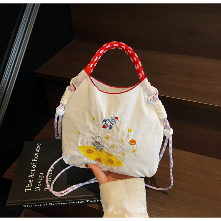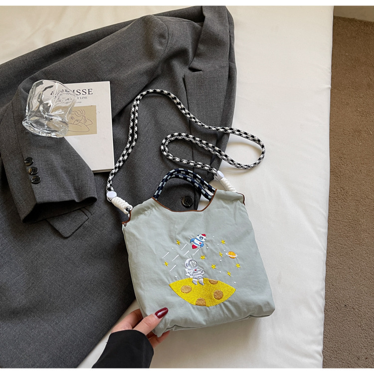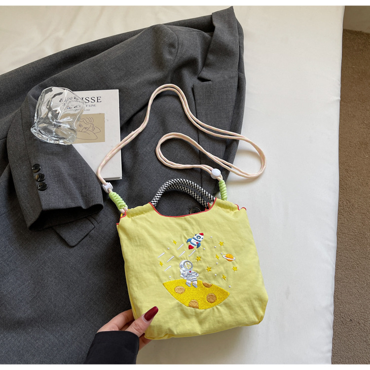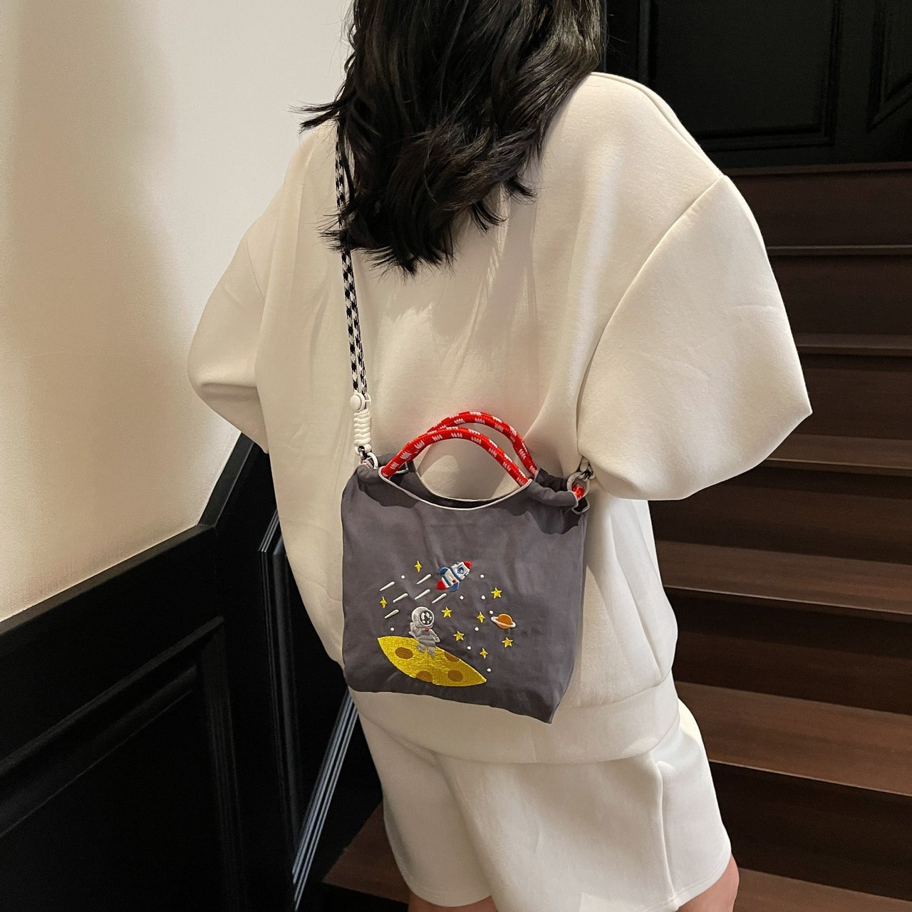 Cute cartoon large capacity shoulder bag embroidered nylon tote shopping bag commuter crossbody bag handbag