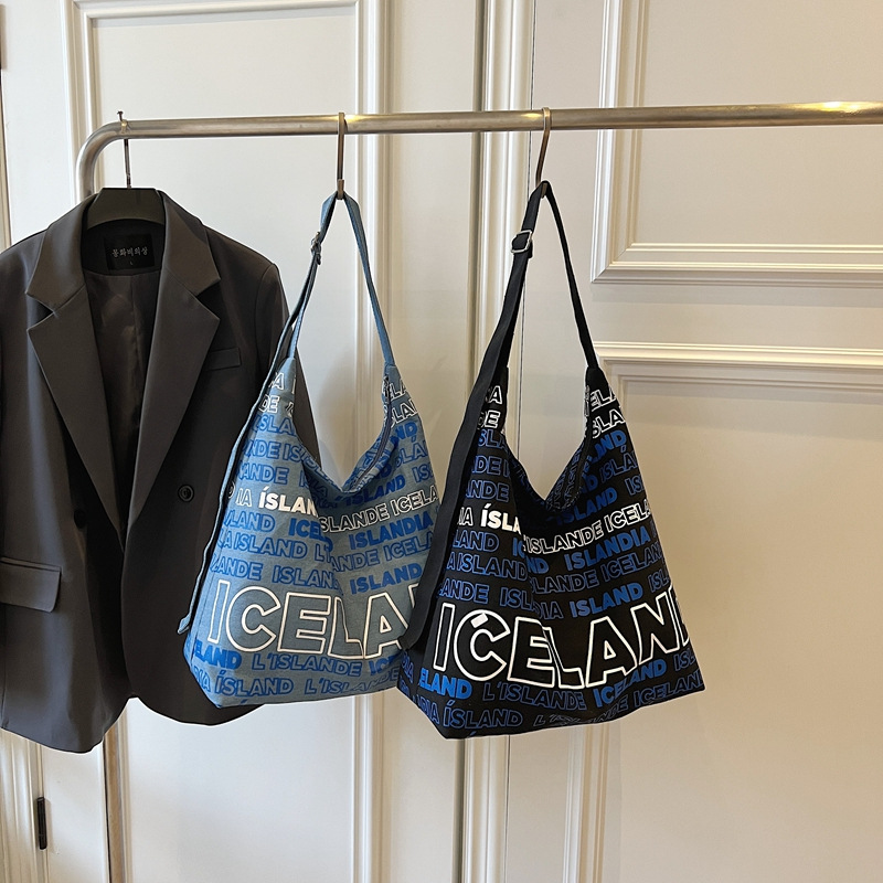 Diliba Iceland One-shoulder Canvas Bag for Teenagers Large Capacity Spring and Summer Simple Commuter Letter Tote Bag