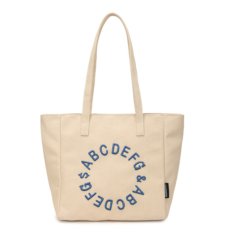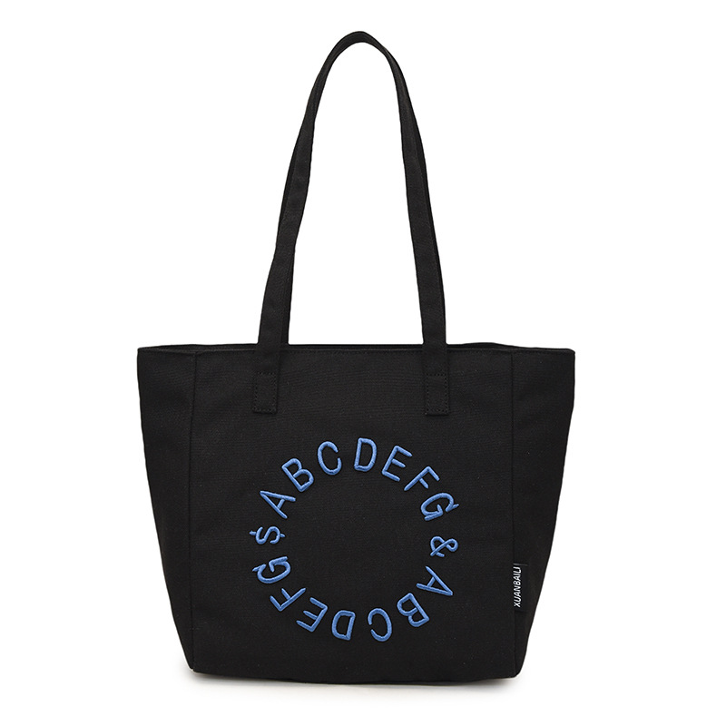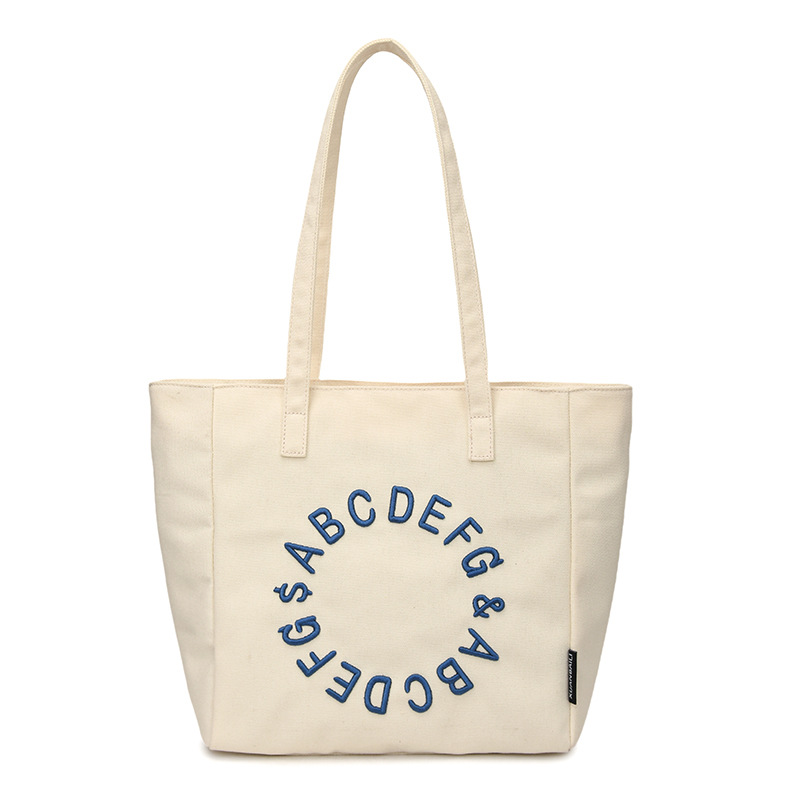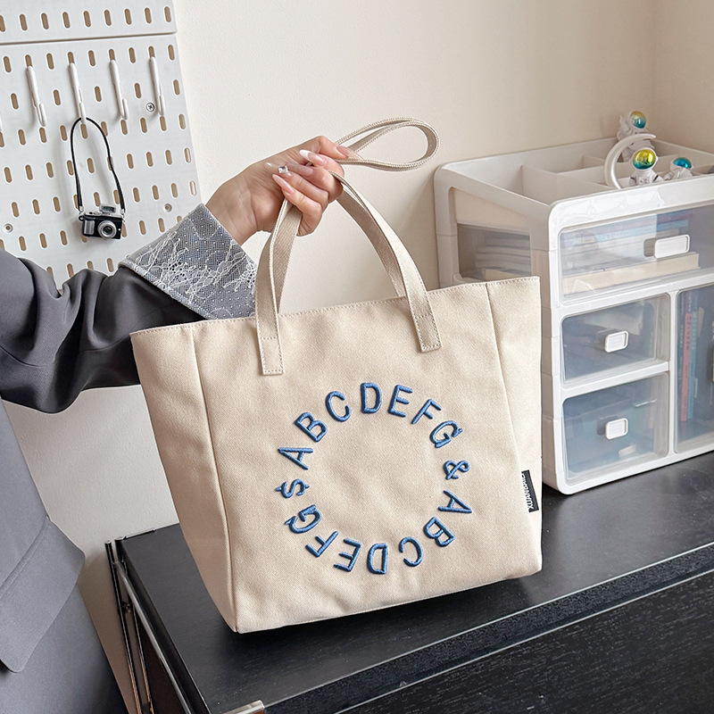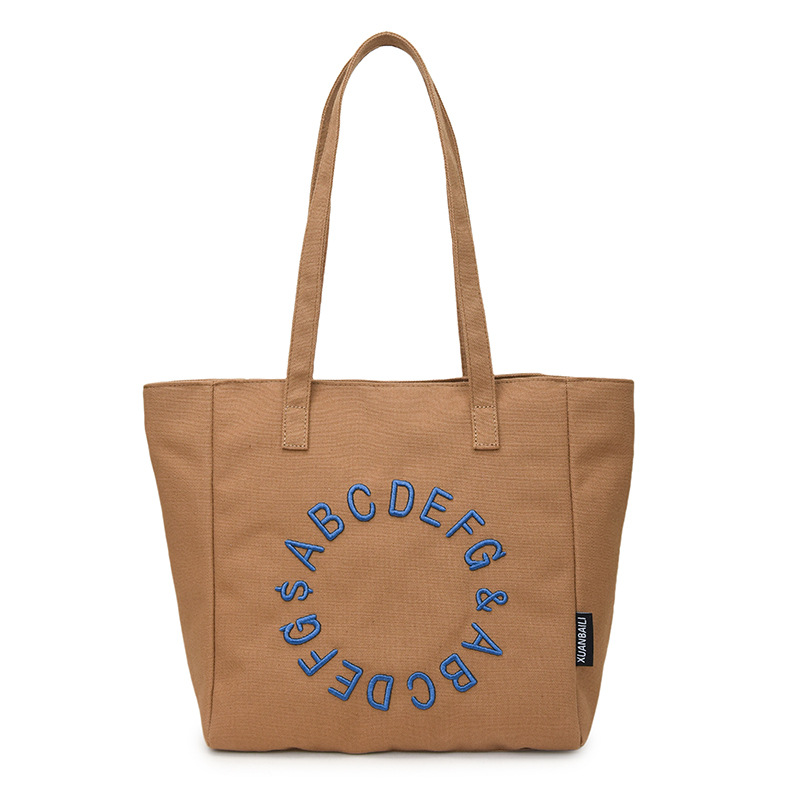 Embroidered letter canvas bag women’s large capacity one-shoulder tote bag niche versatile commuter tote bag