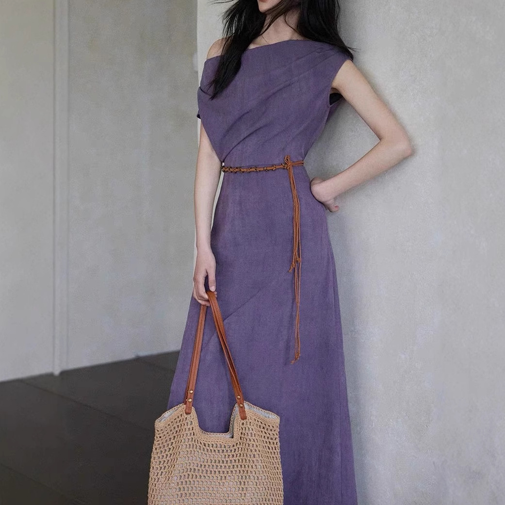 Eryang Design Weiyang New Chinese Style Slanted Neck Dress Female Temperature Purple Design Waist-Close Long Skirt