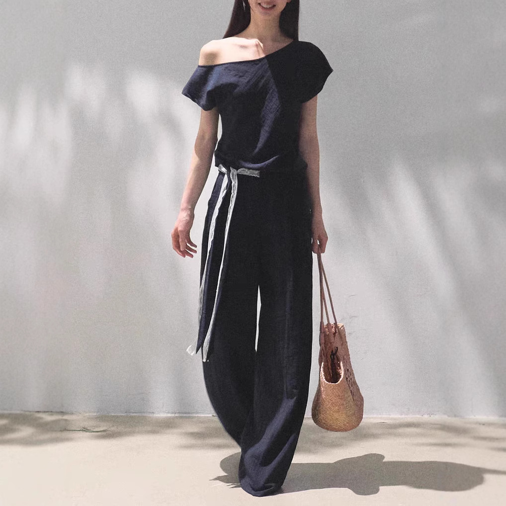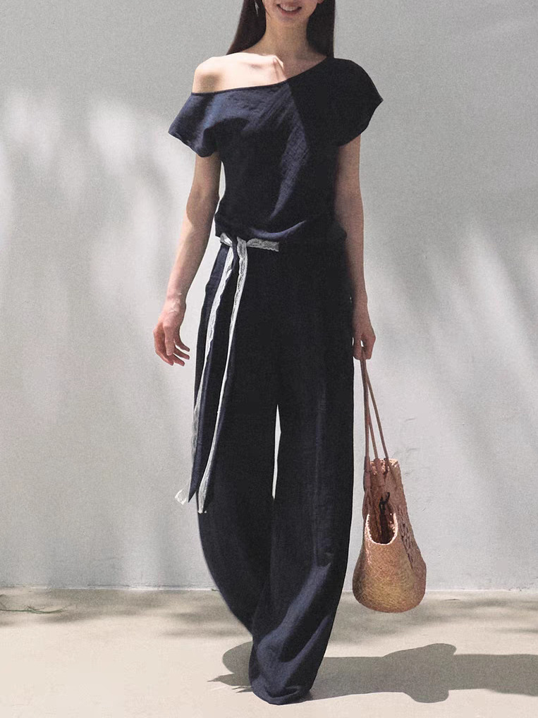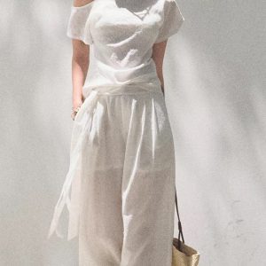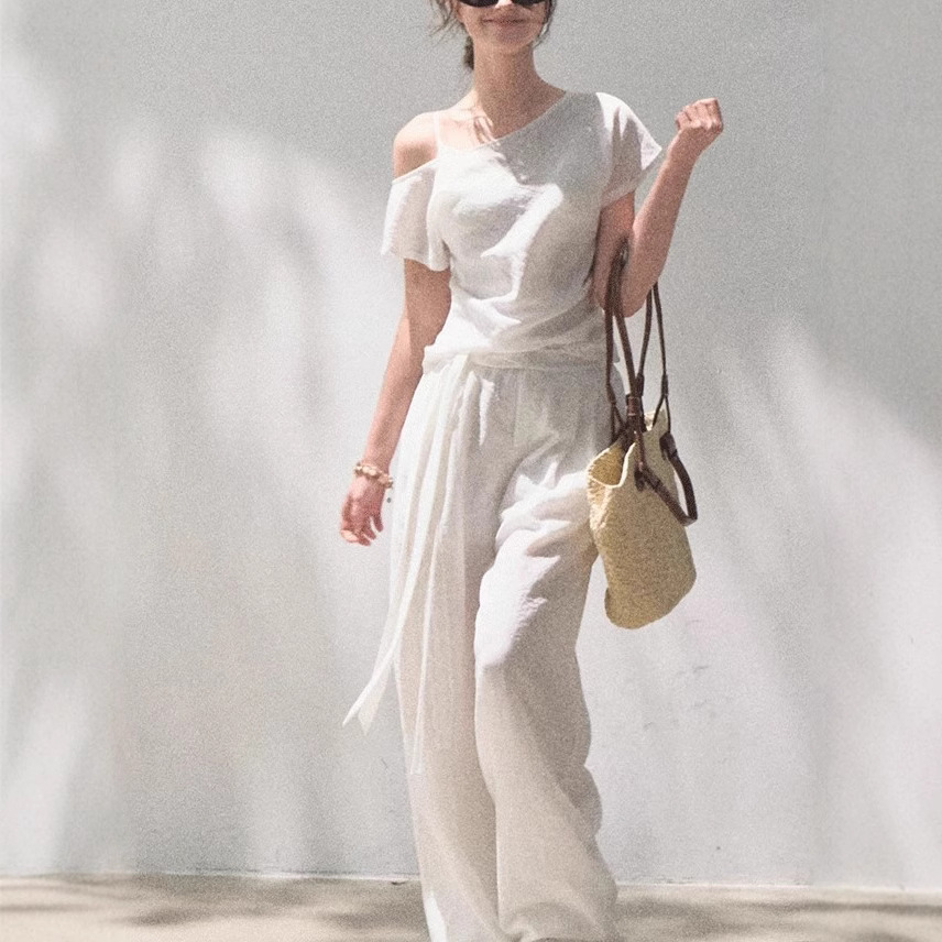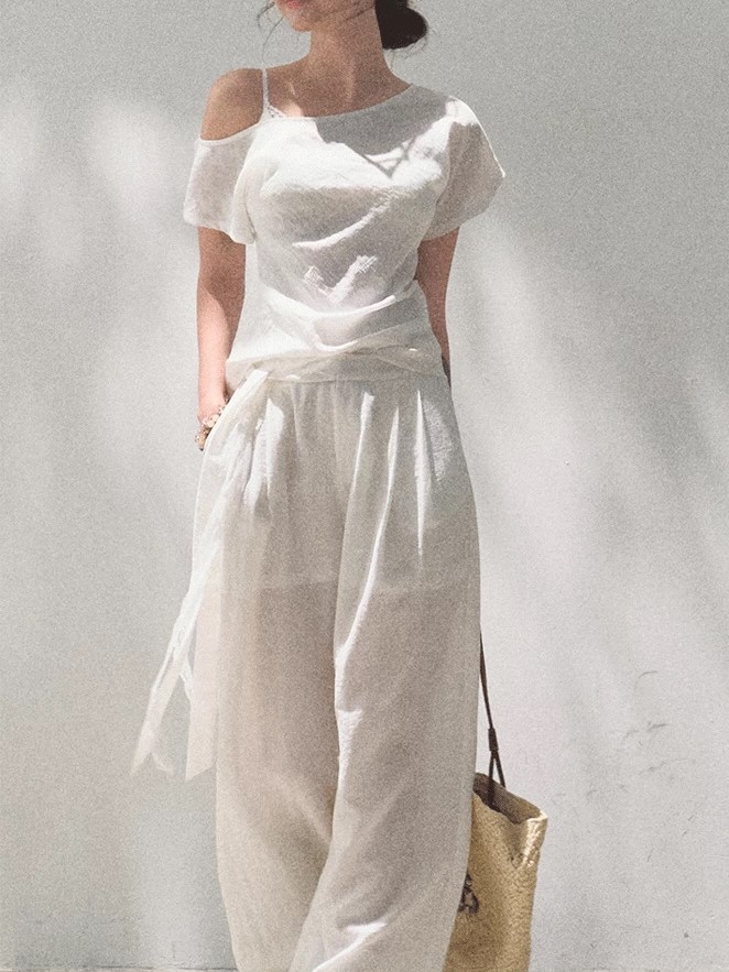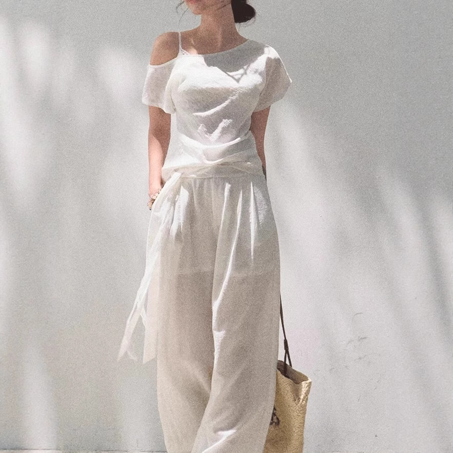 *Far from the Story Line Side-Shoulder Short Sleeve Shirt Casual Trousers Sun Protection Set