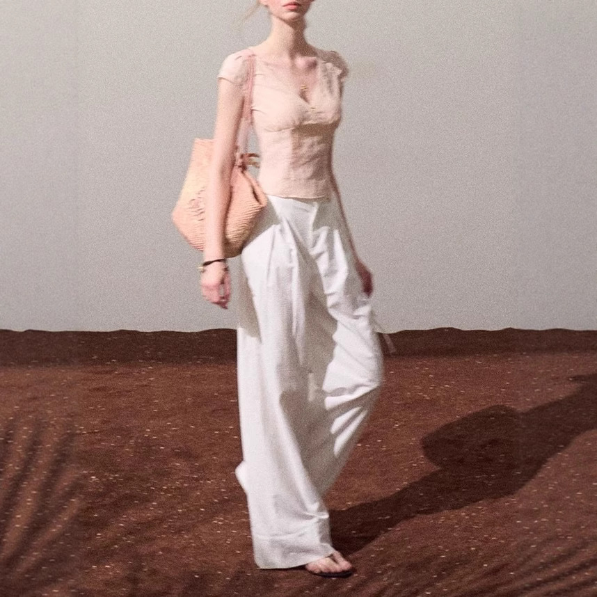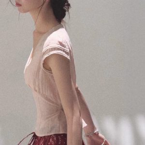 / “Fragrant Breathing” Laiser double-layer lace collar strap versatile age-reducing top