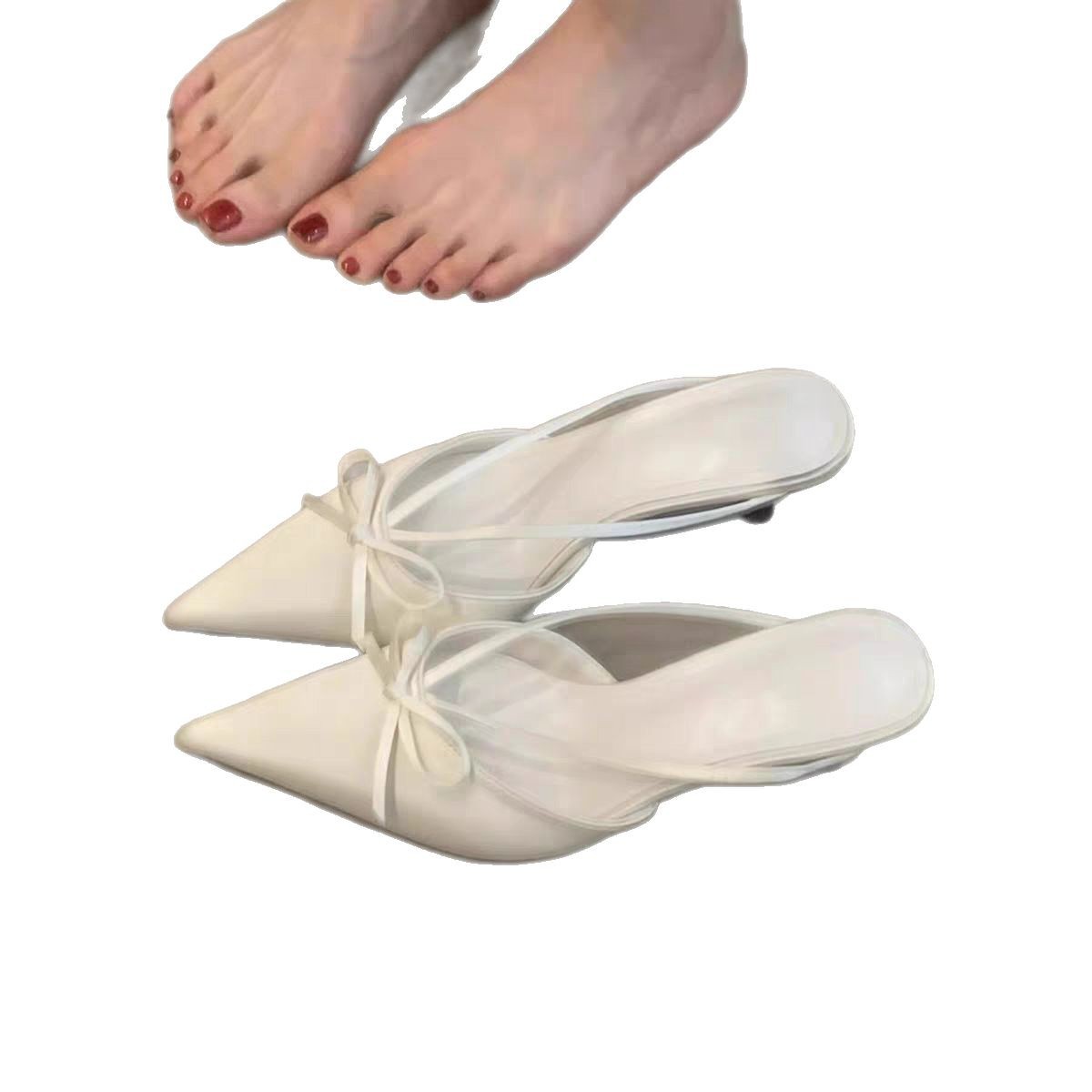 French pointed toe and thin heeled half slippers wearing slim sandals mules with shallow mouth and no tired feet for women