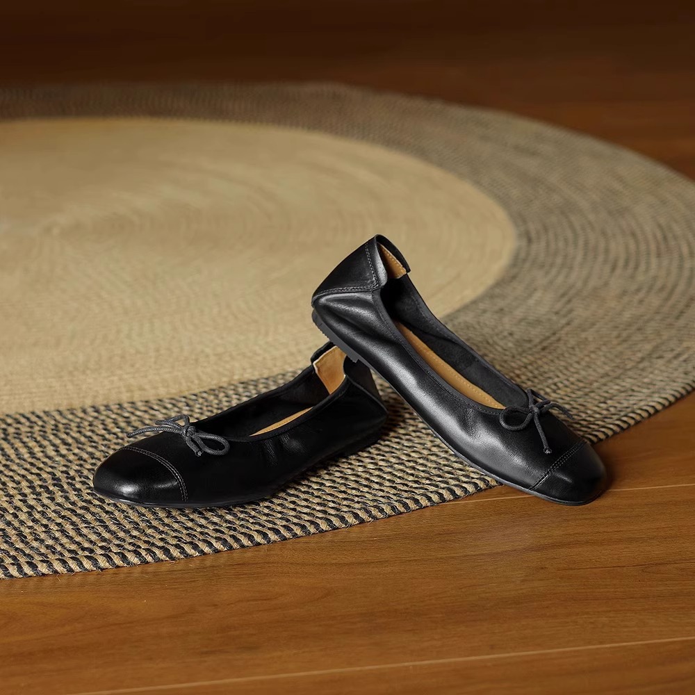 French soft leather comfortable flat ballet red shoes fairy style gentle bow lady literary single shoes