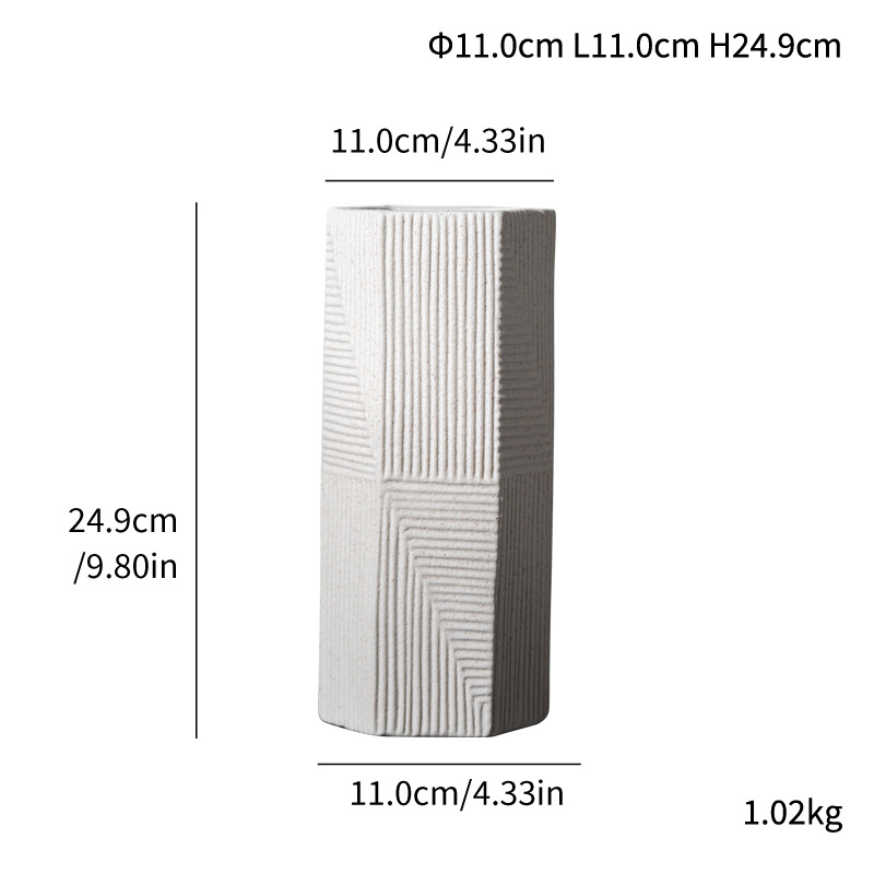 Hexagonal square tube ceramic vase modern simple home decoration products