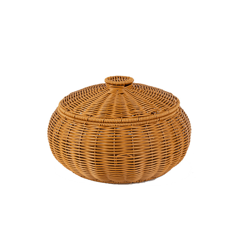 Imitation rattan storage jar with lid living room tea table fruit snack basket steamed bun basket egg basket tea leaf pot storage box