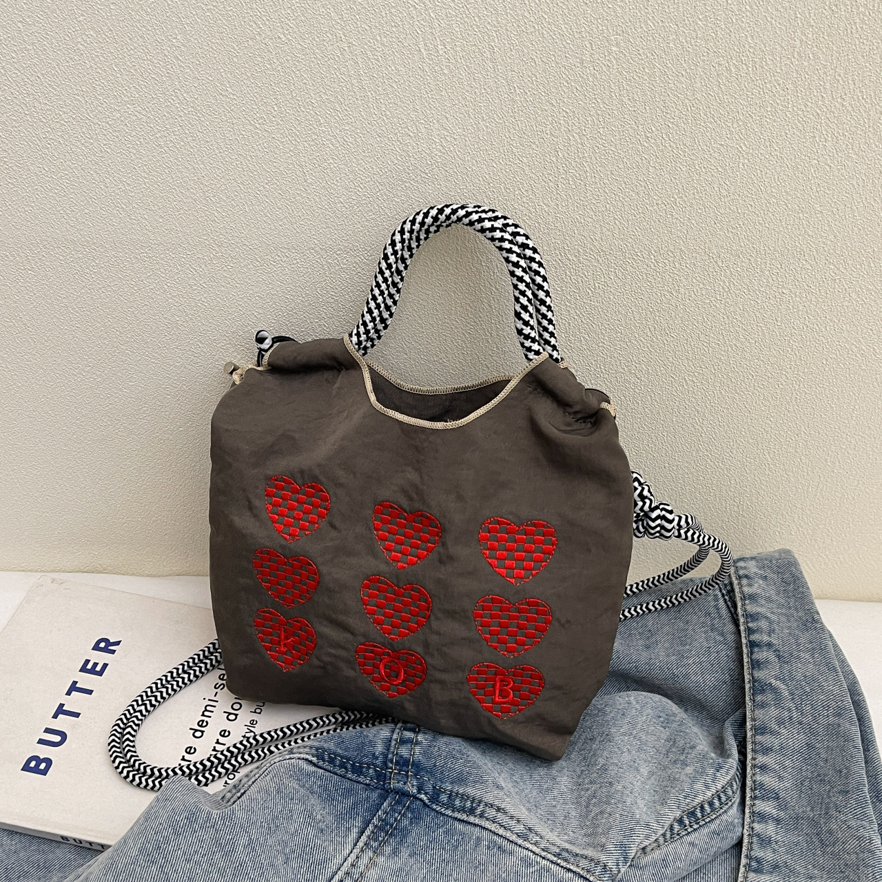 Japanese love embroidered handbag bag environmentally friendly shopping bag simple casual one-shoulder crossbody bag