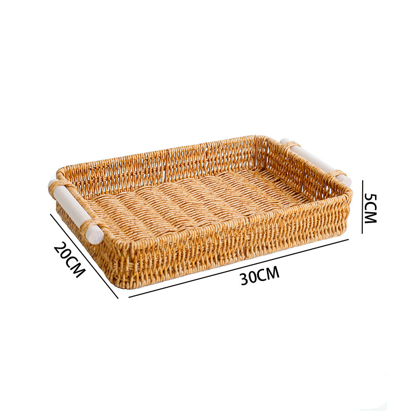 Japanese woven tea cup storage tray basket rattan living room fruit basket bread basket kitchen tableware kitchen utensils