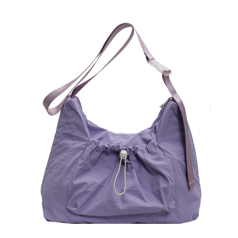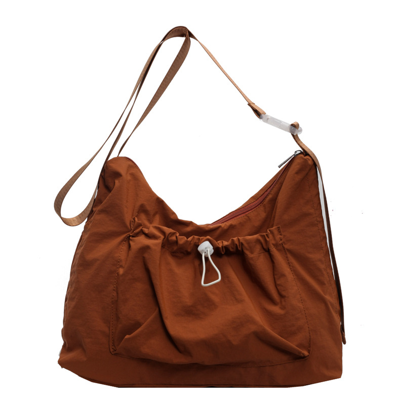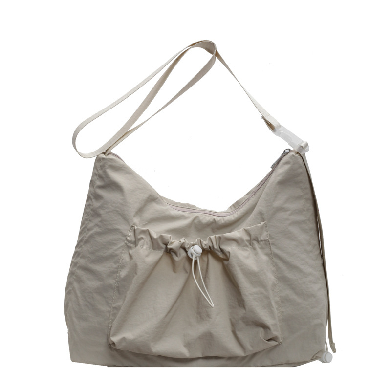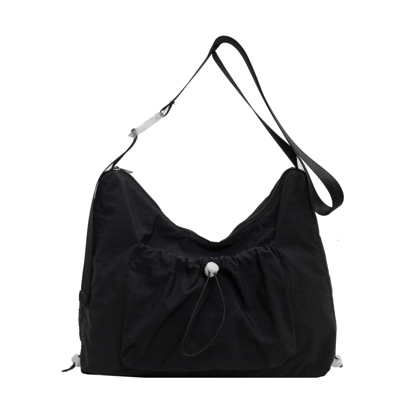 Large capacity cloth bag nylon solid color casual pleated fashionable and versatile one-shoulder class commuter crossbody bag