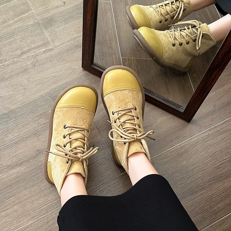 Maillard retro thick-soled Martin boots for women in autumn forest style big yellow boots thin short boots