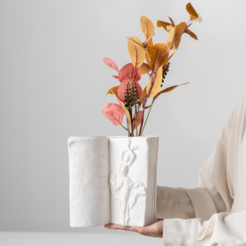 Modern and simple simple white Facebook ceramic vase light luxury ornament art flower insert