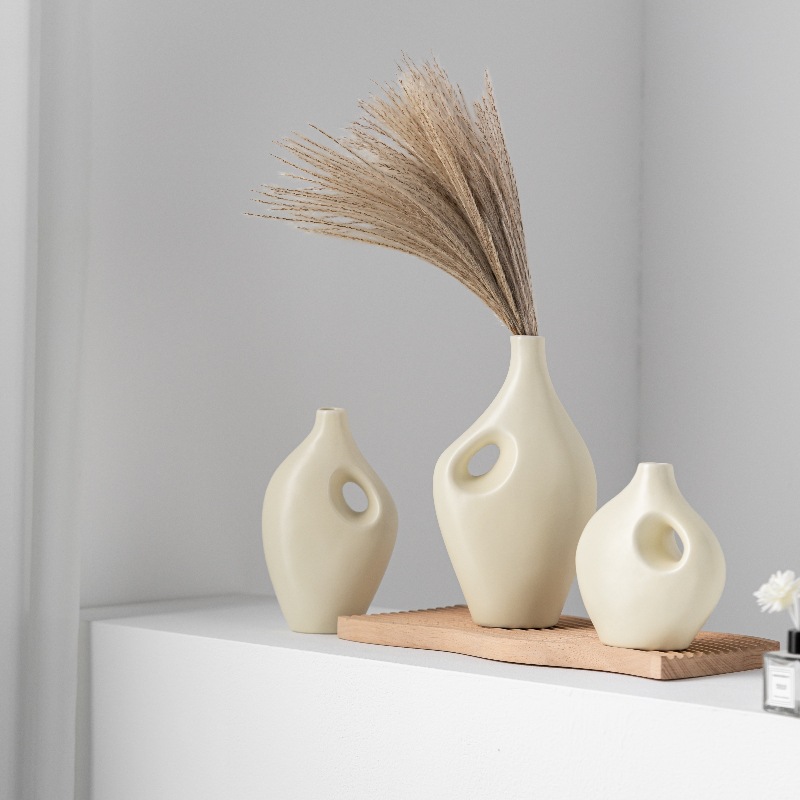 Modern simple beige ceramic vase light luxury high-end home decoration