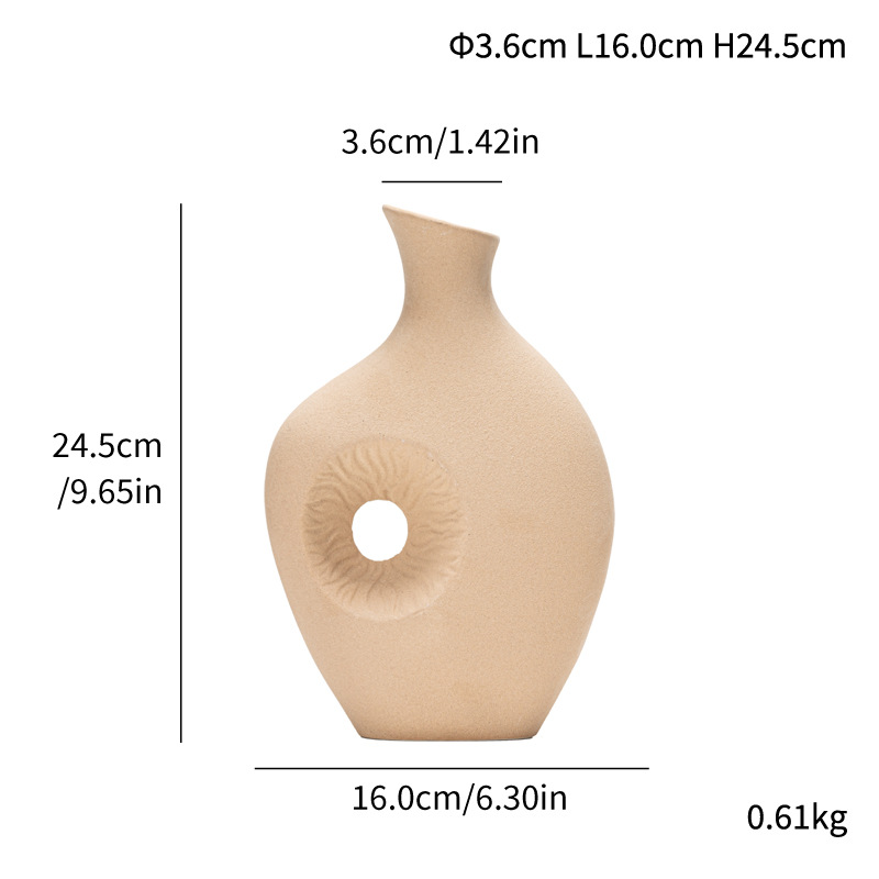 Modern simple slanted sun pattern ceramic vase high-end flower insert light luxury home soft decoration ornaments